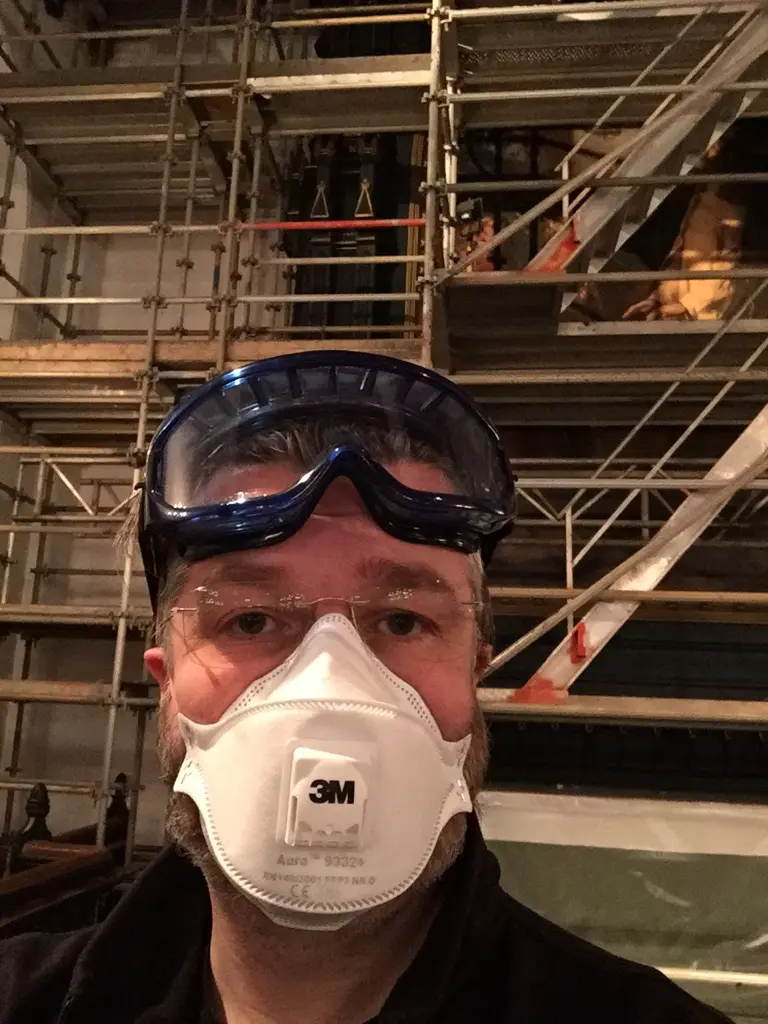 Selve arbeidet var i hovedsak fjerning av støv. En svært møkkete jobb som krevde riktig utstyr. I og med det var satt av begrenset tid til arbeidet, var det kun tid til å fjerne to typer støv. Et grovt, hvitt «nytt» lag med støv som kunne fjernes ved forsiktig å koste støvet inn i en støvsuger. Deretter kunne det finere, sorte støvlaget – trolig et resultat av 50 år med utslipp fra biler – fjernes med røyk-svamper og smale, myke polyuretan svamper.