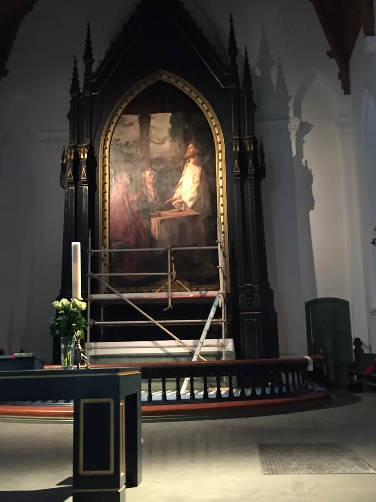 Vinteren 2018 startet det et stort arbeid i Kristiansand Domkirke med å rengjøre den store altertavlen av Eilif Pettersen fra 1886.