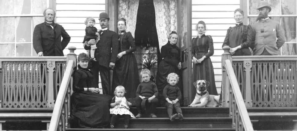 Familien samlet på verandaen på Gimle, sommeren 1897.