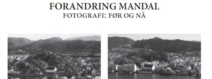 Forfatteren forteller om prosjektet og viser nye og gamle fotografier fra Mandal. De historiske fotografiene er utlånt fra Mandal museum / Vest-Agder-museet. Peter Lukas har fotografert tilsvarende motiver fra tilsvarende vinkler.