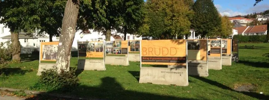 Fotoutstillingen «BRUDD 2014 – bidrag til grunnlovsjubileet» fortsetter sin vandring i Vest-Agder. Den har nå kommet til Flekkefjord, der den står i Sundeparken fram til 9. november.