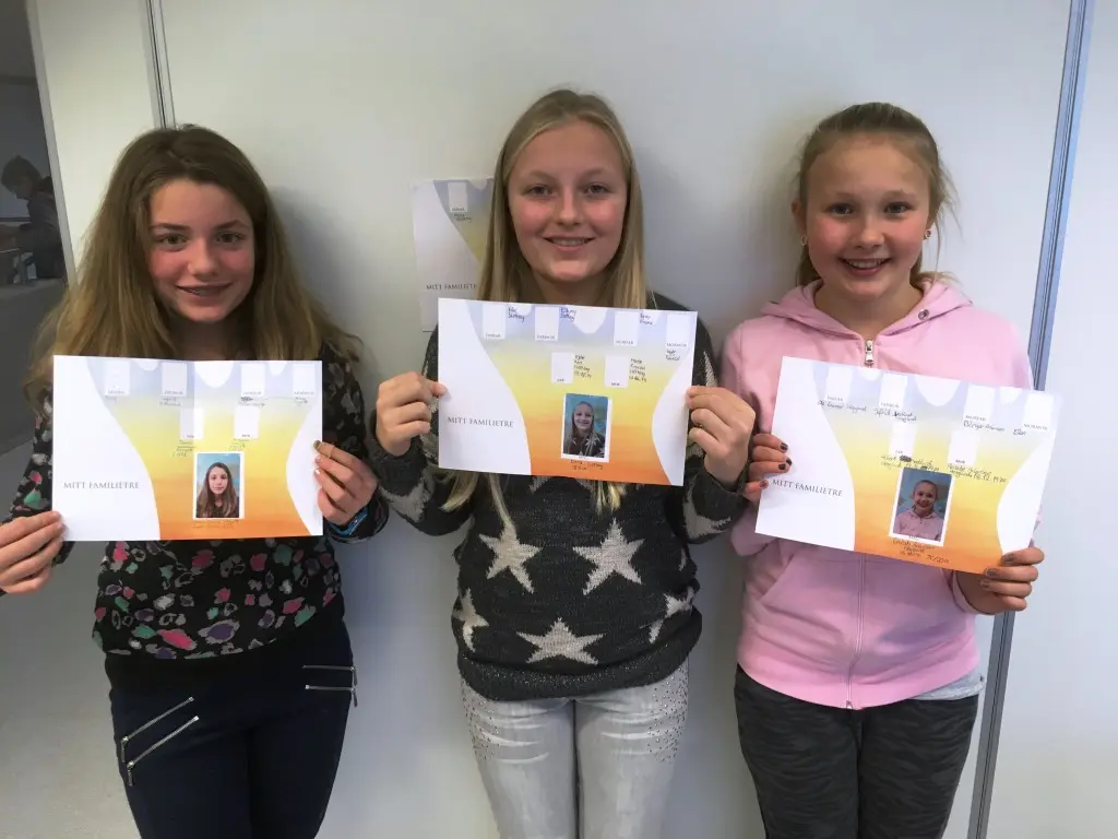 Hedda, Emma og Sarah fra Hellemyr skole har kommet godt i gang med sitt familietre.