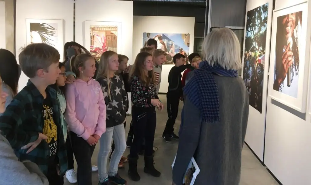 Sidsel Jørgensens fotografier og noen eldre familiebilder fra Barbados pryder nå veggene i aktivitetshuset, og Jørgensen tar selv elevene med i utstillingen. De får høre om livet på den karibiske øya, om seilskutetid, sukker og rom, om sjørøvere, trekanthandel, boliger og arbeid før og nå. Hun forteller historier, og elevene får delta i tolkning og tidfesting av bilder.
