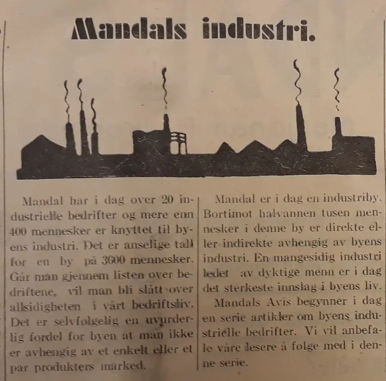Mandal var på denne tida utvilsomt en industriby! Mandals avis 23. februar 1935.