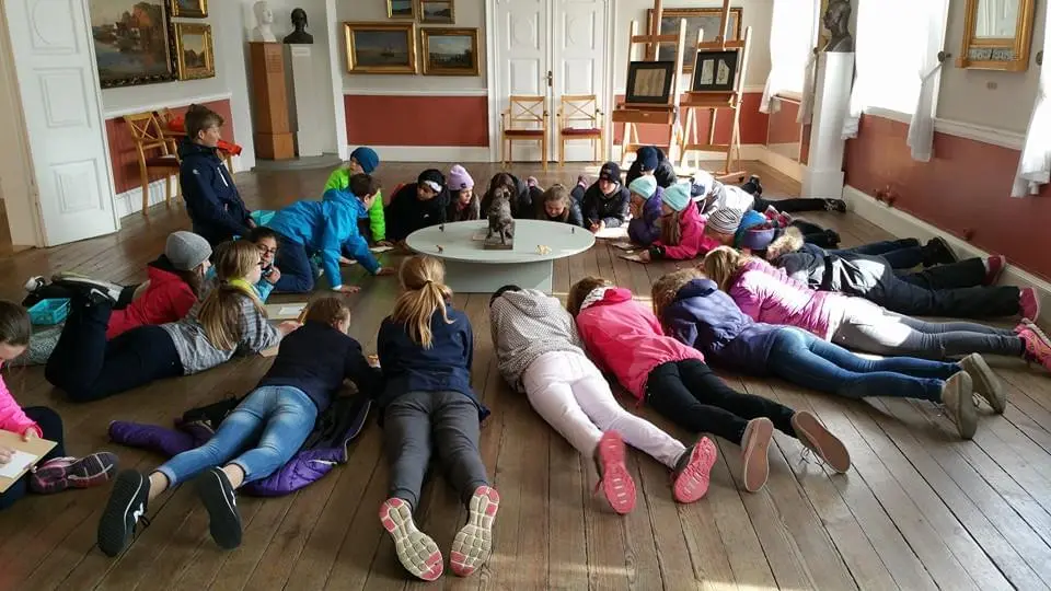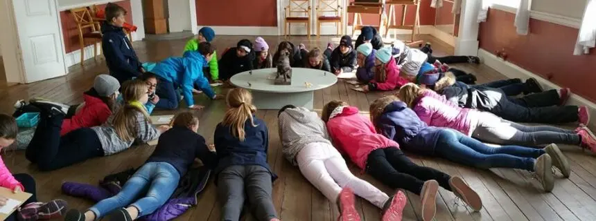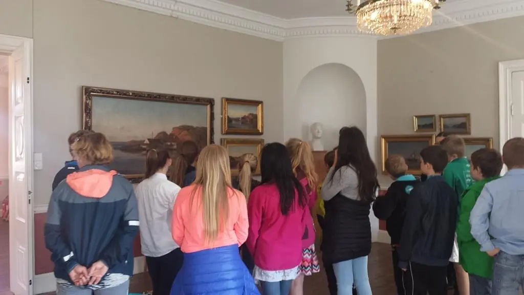 Elever fra Frøysland i Amaldus Nielsen-utstillinga i Mandal museum