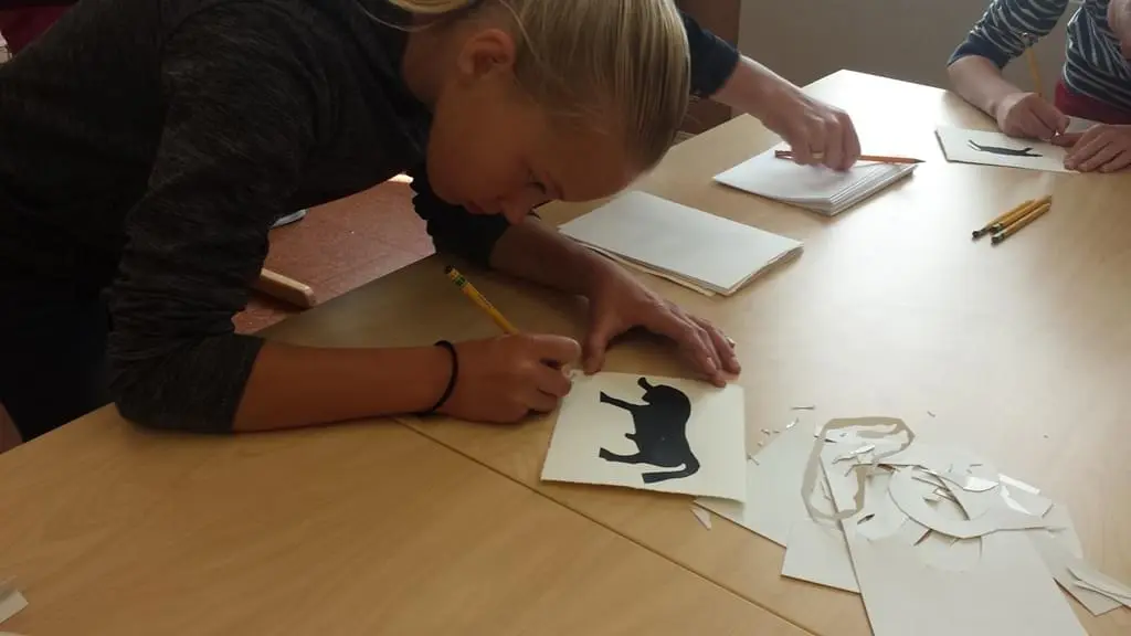 Elever fra Ime skole skal lage flattrykk. Første delen er tegning av dyr.