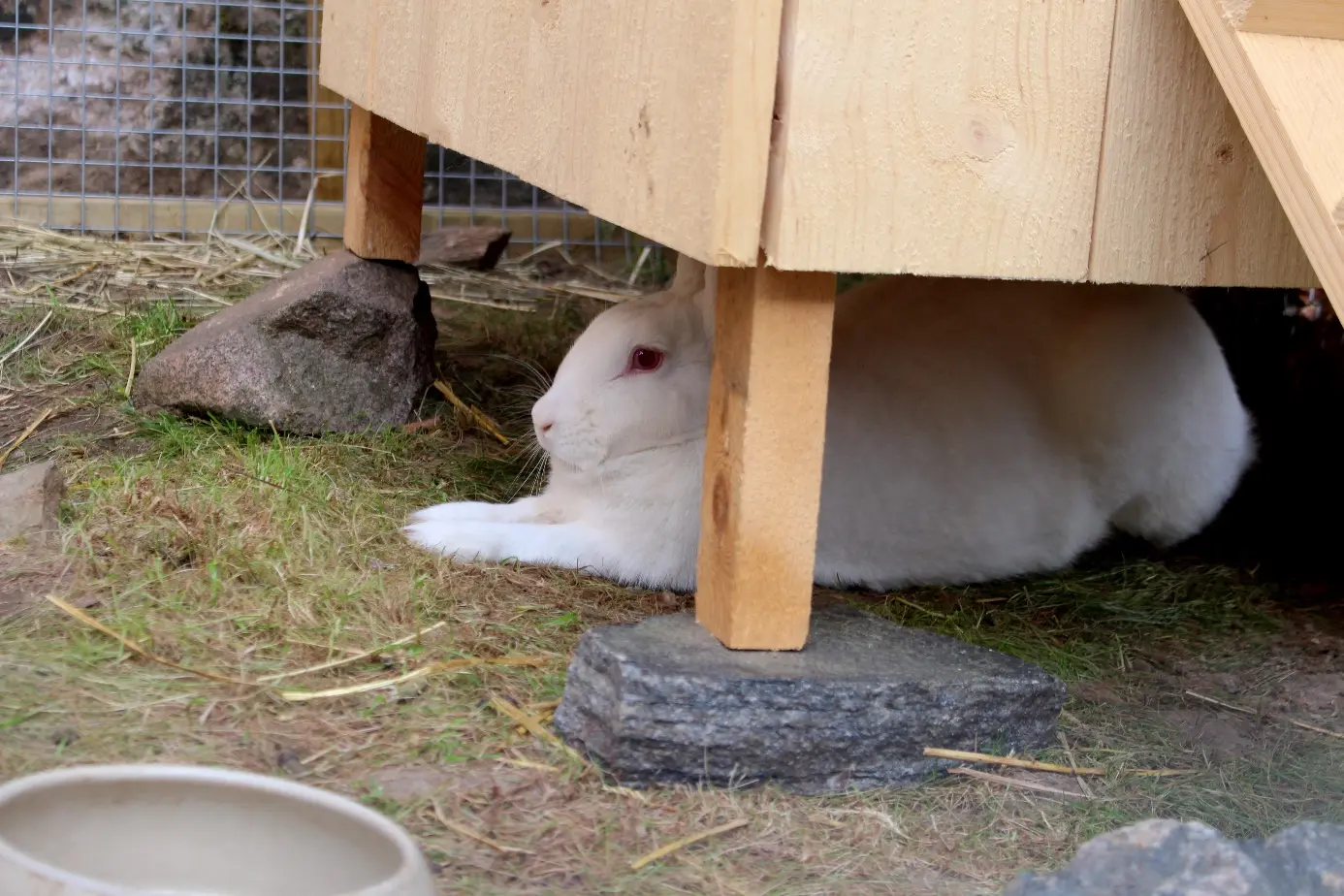 Hvit land eller smålenskanin er den vanligste rasen i Norge. Kaninen har skinnende hvit pels og røde øyne.