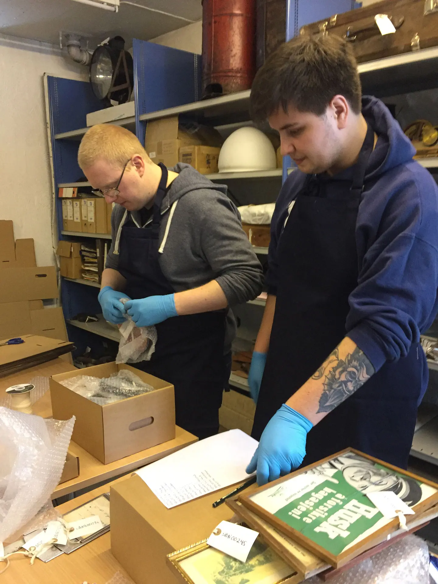 Gjenstander som er merket pakkes inn i bobleplast før de plasseres i syrenøytrale esker.