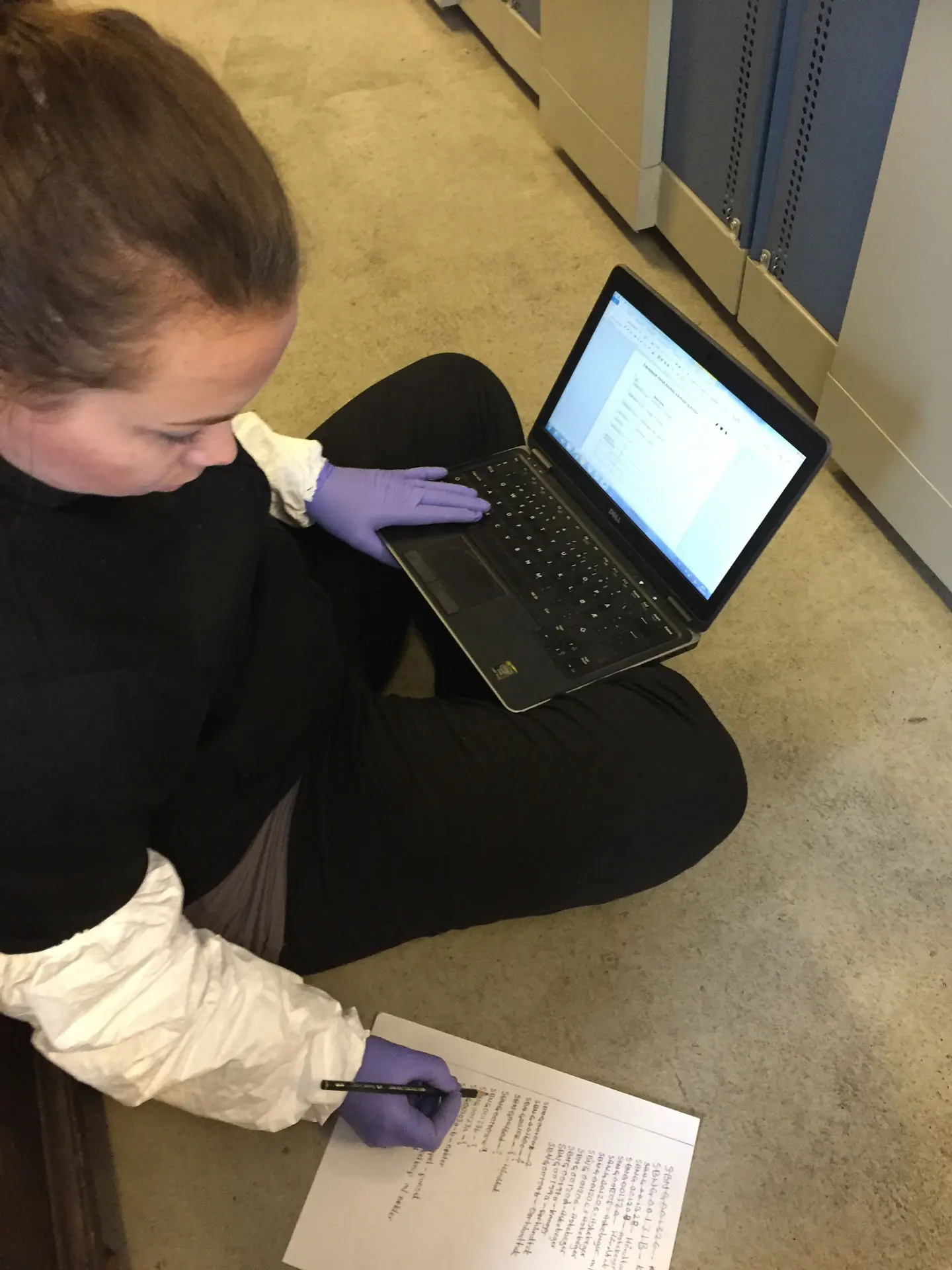 Gjenstandslistene føres inn i skjemaer på pc som senere skrives ut og oversiktene limes på utsiden av eskene.
