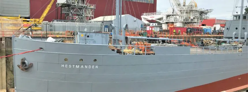 I de siste dagene har D/S Hestmanden fått noen nye strøk med maling. Skipet har fremdeles den karakteristiske gråfargen. Mange har spurt oss om hvorfor D/S Hestmanden er malt grå, når dette ikke er skipets fredsfarger. I denne artikkelen skal du få lære litt om hvorfor vi har valgt å male skipet grått og hvordan skipet så ut i fredstid.