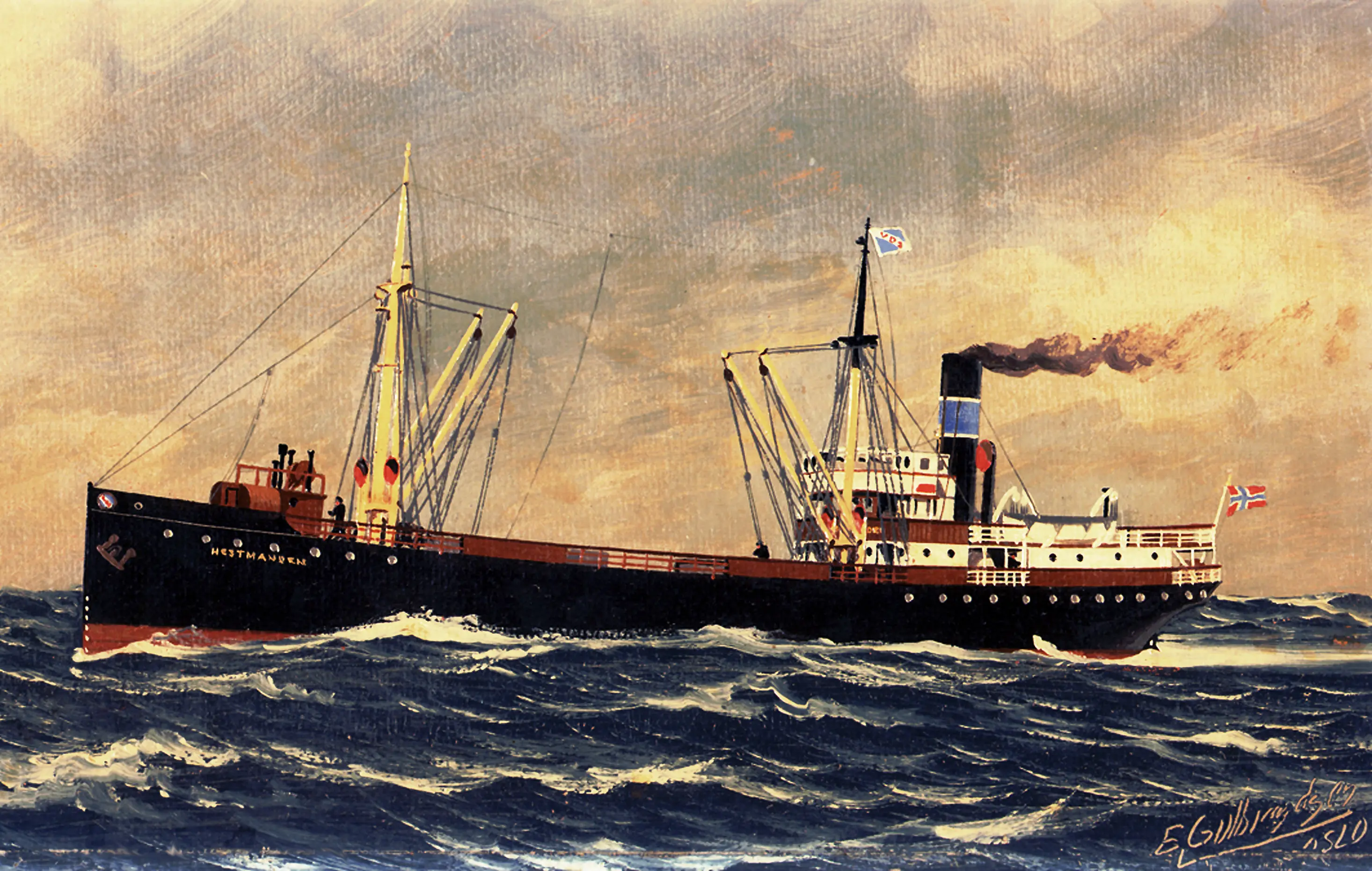 For norske skip var det en annen sak. Norge var jo nøytralt stilt under denne krigen, og i teorien skulle dermed ikke norske skip bli senket. Dessverre mistet mange norske sjøfolk livet på havet under denne krigen, og mange norske skip ble senket. I et forsøk på å sikre seg mot senkninger begynte man å male store norske flagg på skutesidene på norske skip. Man skrev også NORGE med store bokstaver på skutesiden, sammen med skipets navn. D/S Hestmanden ble påført en slik maling, og dette skulle hindre fienden fra å angripe det nøytrale skipet.