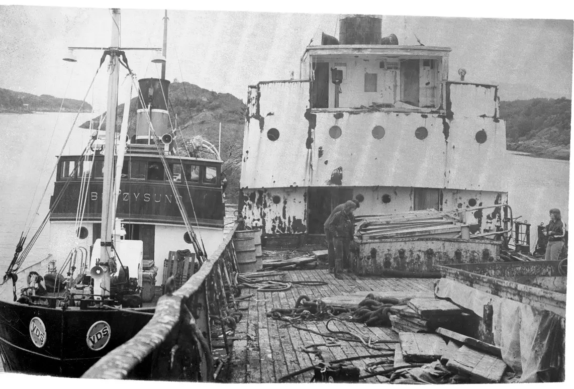 D/S Hestmanden ble benyttet som lasteskip i flere år etter krigen, og da skipet skulle restaureres var det et stort behov for et nytt lag med maling. Under ser man hvordan skipets å ut etter mange år i arbeid.