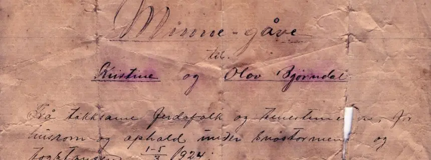 I takknemlighet til familien som tok så godt imot de reisende, ble det samlet inn penger til et kaffesett i sølvplett. Kaffesettet besto av brett, kaffekanne, sukkerskål og fløtemugge. På fatet står det inngravert «Minne frå togstansen 1 – 3. 3. 1924».