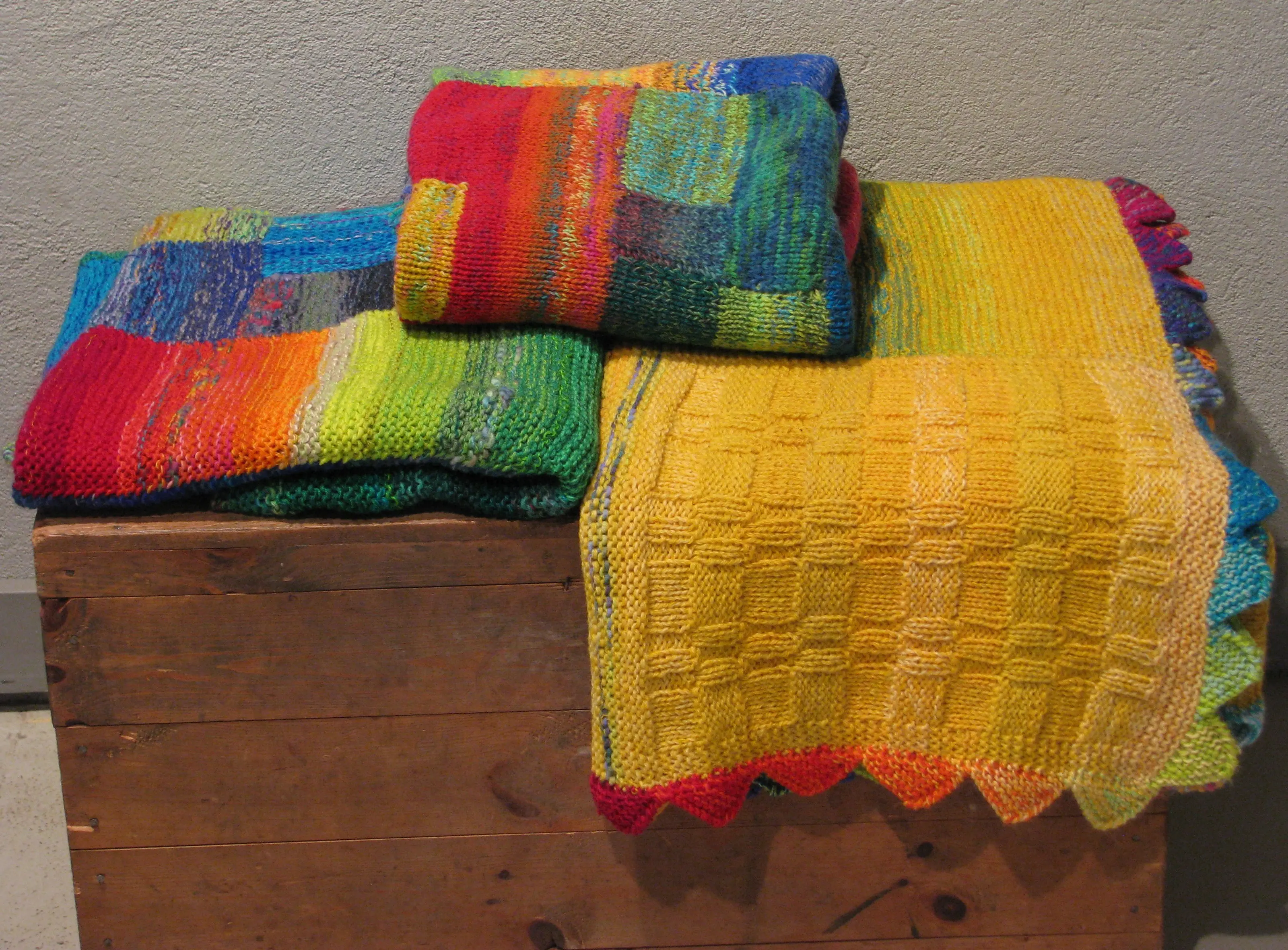 Fargeglade tepper strikket av Bodil Hodne Nilsen