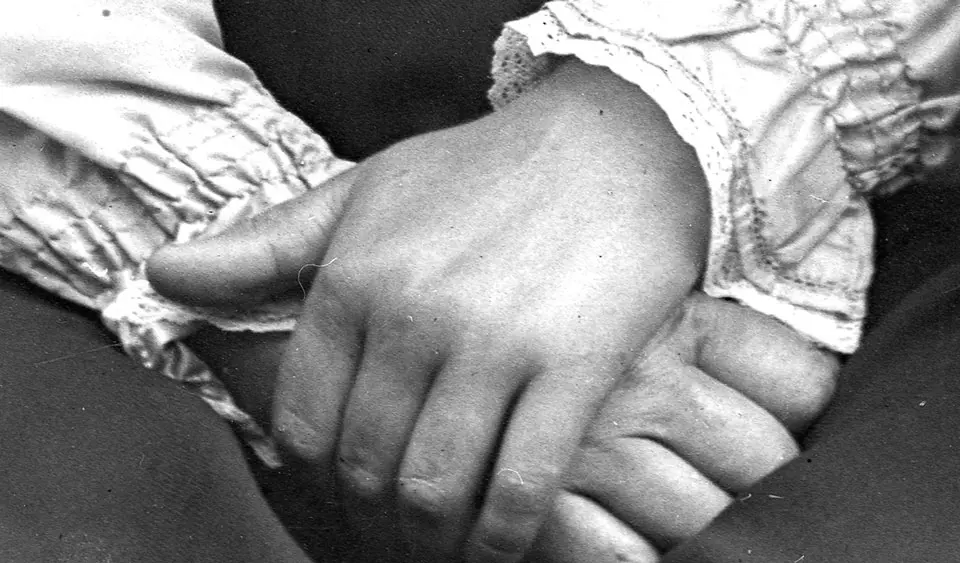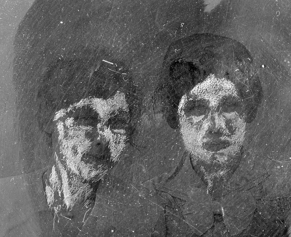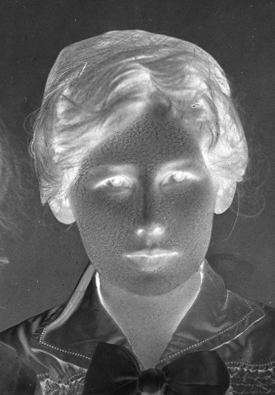 Forstørrer man opp detaljer i bildet (negativet) ser man tydeligere den retusj-jobben som er gjort.