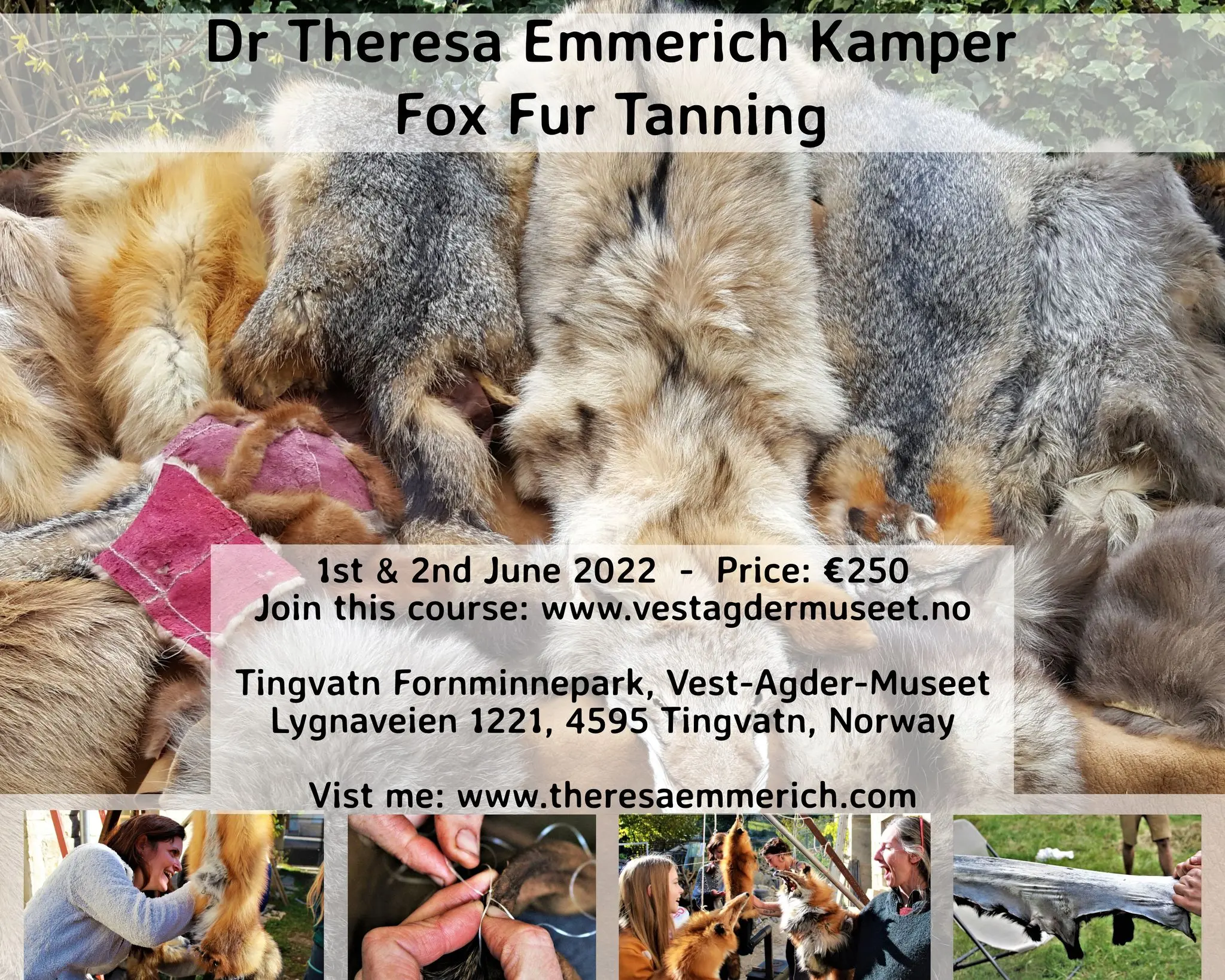 Dr. Theresa Emmerich Kamper comes to Tingvatn fornminnepark to hold a course in traditional tanning. This is a great chance to learn from one of the best in the business. 1st-2nd June 2022.