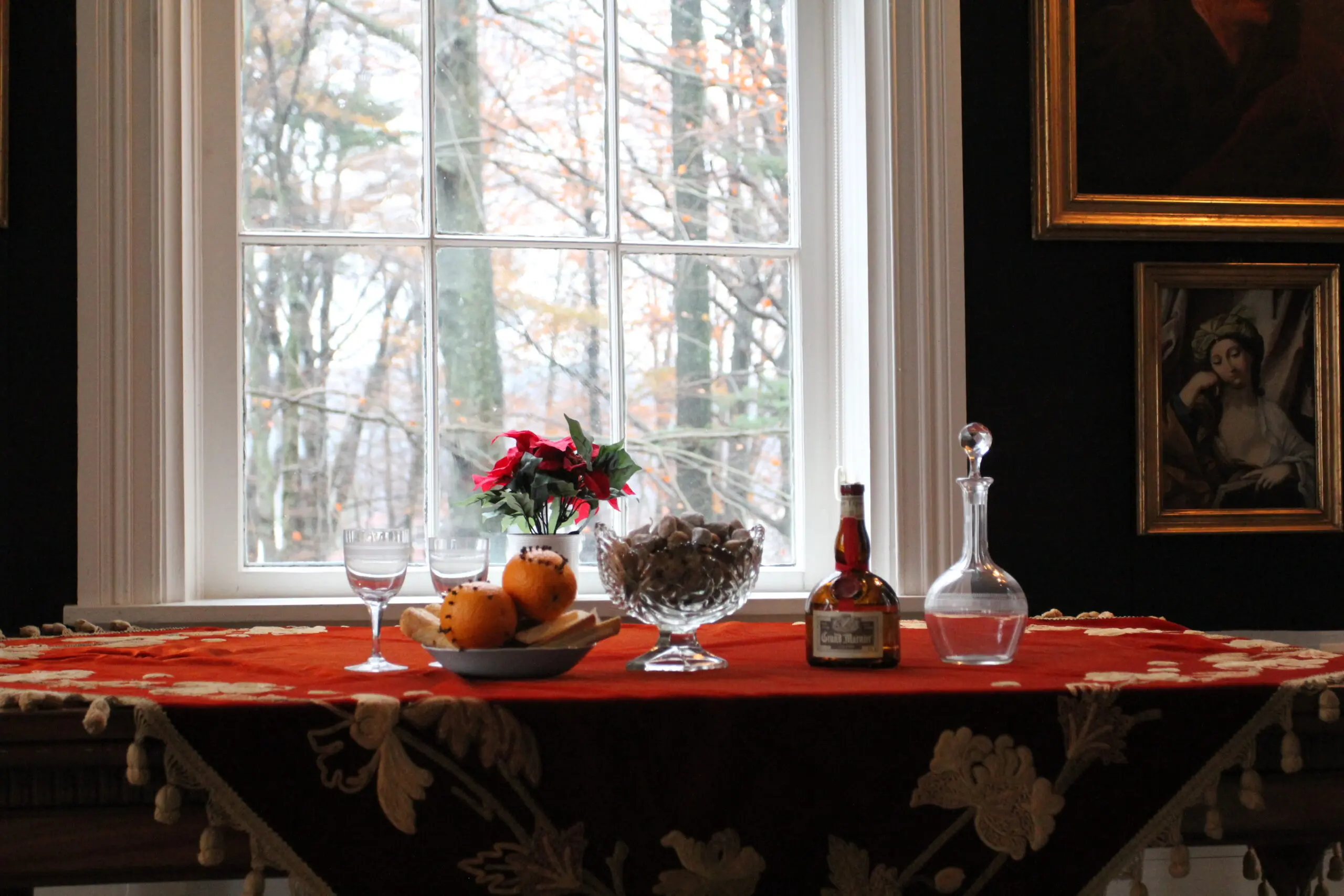 Når klokkene slo i Oddernes kirke, ble det satt en tallerken julegrøt på låvebrua. Så skiftet vi til vårt fineste tøy, og ble samlet alle sammen, hele familien og hele tjenesteskapet. Bestefar leste juleevangeliet. Stor og trygg sto han der og leste for oss. Det ble servert et glass mjød eller portvin etterpå. Og en kake. […] Så var det gang rundt juletreet. Her var ikke bare ett juletre, men mange. De var hugget i Gimleskogen, det som nå heter Gimlekollen, og det var stor stas når trærne ble hugget. Så var det opp i Gullsalen i andre etasje, hvor vi spiste ribbe. Senere ville bestefar ha torsk, så da ble det ribbe for de som ville ha det, og torsk for de som ønsket det. Og risengrøt, med mandler til tjenesteskapet.