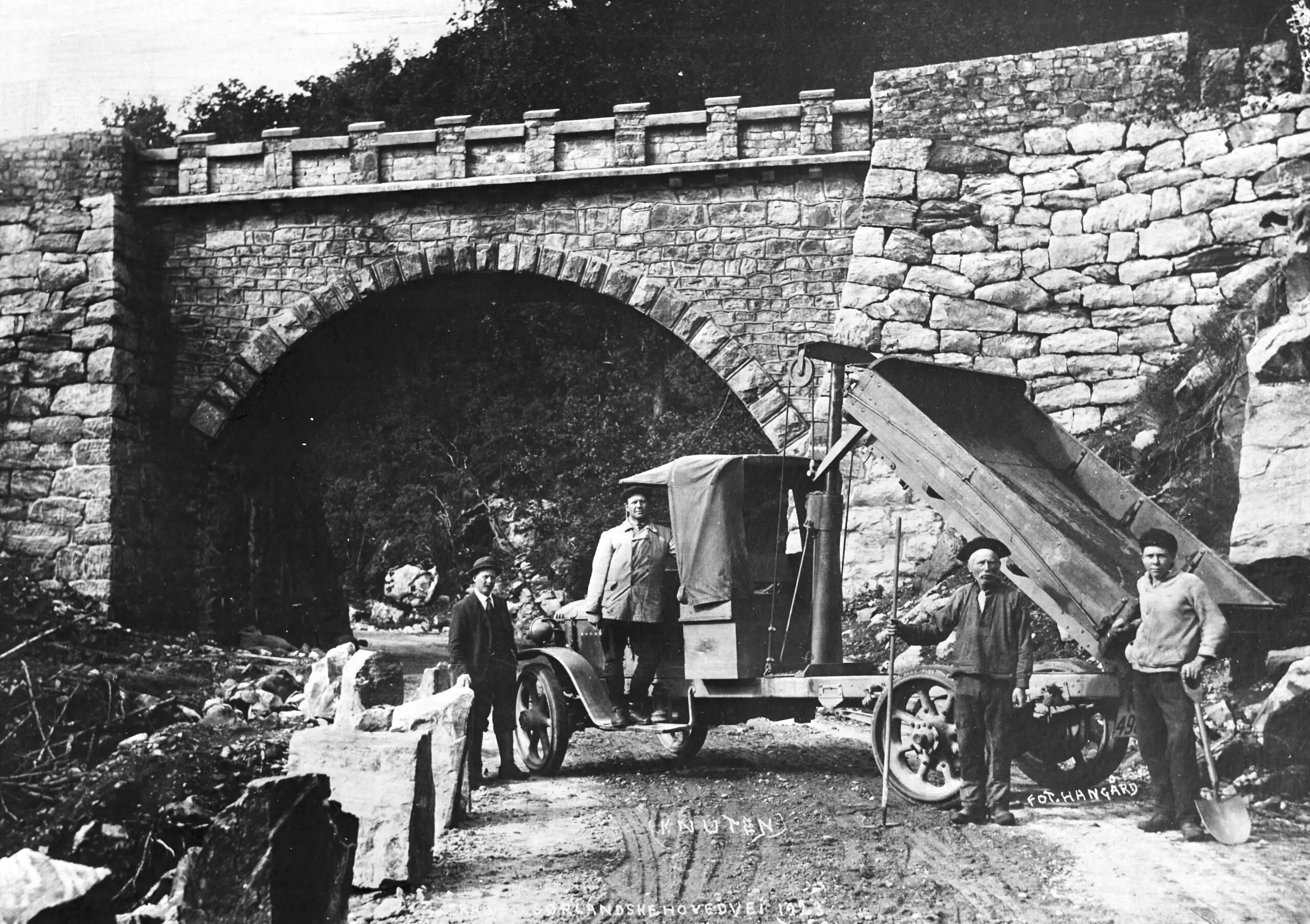 Alt arbeid i Knuden og Gjengesti bro ble utført med handkraft. Broen ble ferdig i 1922 – og veien til broen ble åpnet i 1923. Bilen hadde allerede kommet til distriktet og hadde kjørt på Vestlanske hovedvei i 15-16 år. Dårlige bremser og motorer med fallforgassere som da måtte rygge opp de bratteste bakkene kunne nå kjøre på en behagelig vei – Riksvei 40.