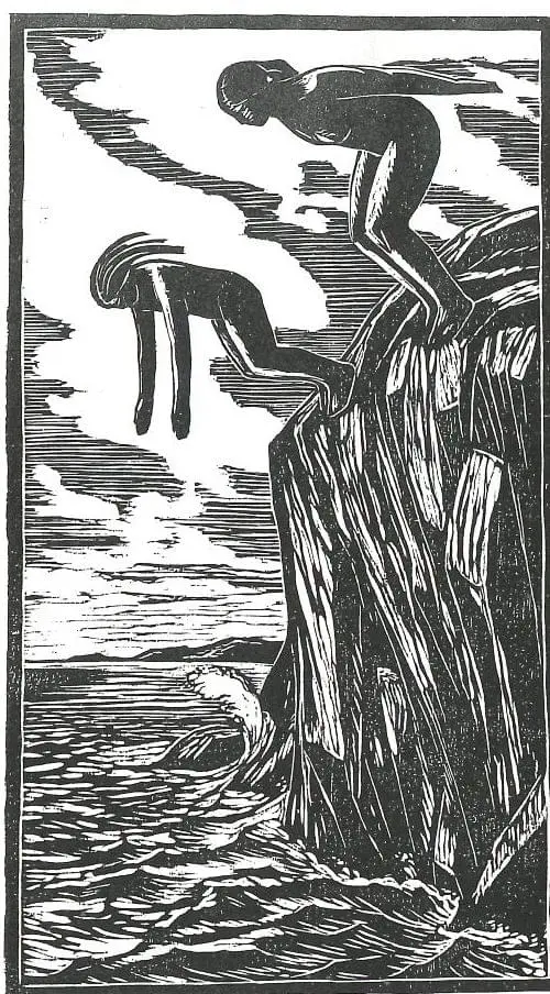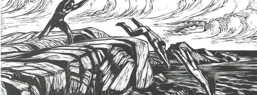 Et av Gustav Vigealnds tresnitt som viser badende barn