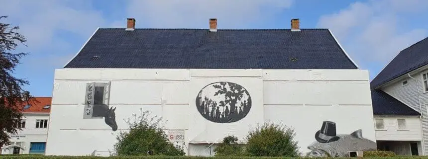 «VI SPRAYER DIN HISTORIE» – lag en silhuett! I sommer gjennomførte vi prosjektet «Vi sprayer din historie», inspirert av museets slagord «Vi forteller din historie». Det resulterte i noen store bilder på en av museets vegger.
