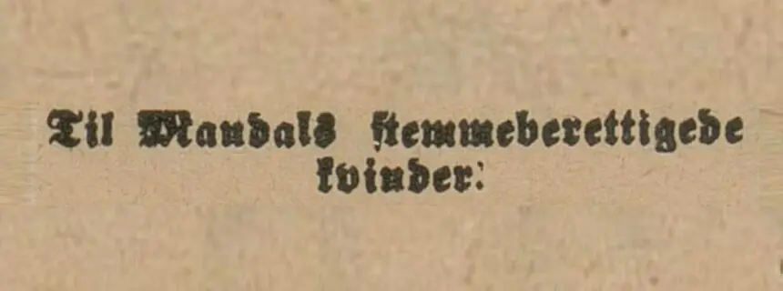 Kvinners deltakelse i yrkesliv og offentlig ordskifte ble viktig. Gjennom hardt arbeid ble kvinners formelle rettigheter gradvis utvida gjennom 1800-tallet. I 1901 fikk velstående kvinner stemmerett ved kommunevalg. Stemmerett betydde også at kvinner ble valgbare. I Mandal ble imidlertid ingen kvinner valgt inn ved valget i 1901, men engasjementet hadde starta.