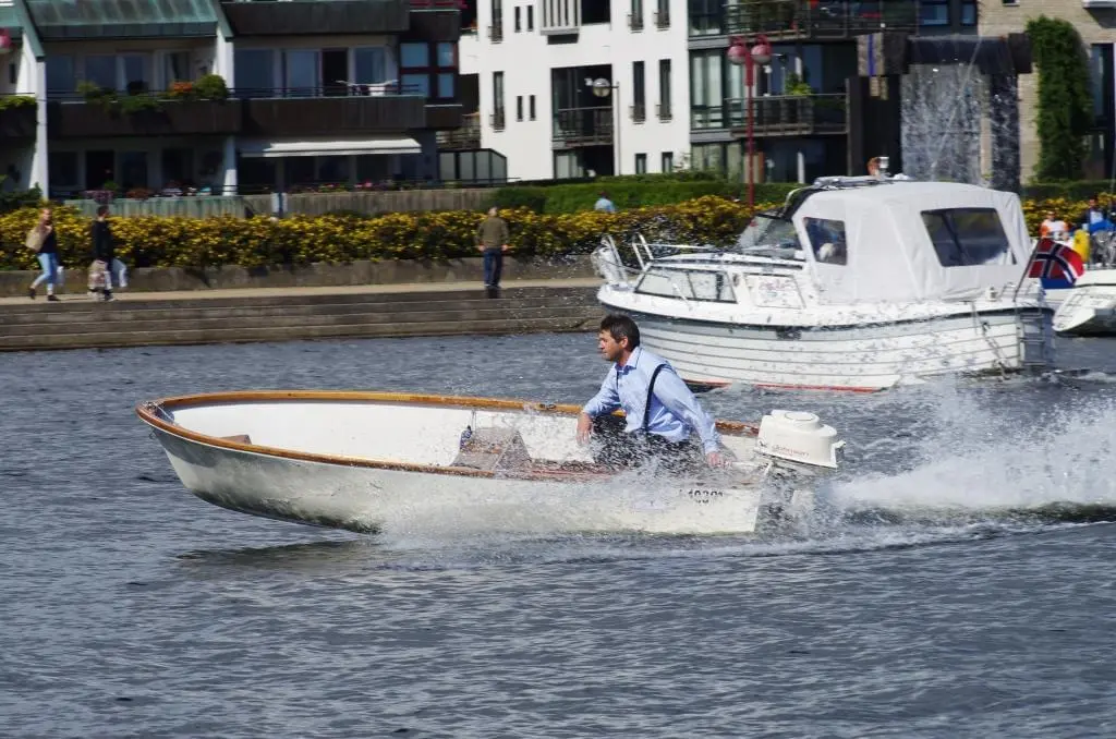 Mellom defileringen og regattastart ble regattabanen prøvekjørt av Peter Klemsdal i en nystøpt Fjordling 18′ runabout. Båten er laget i karbonfiber av bedriften Elbåt AS basert på Jan Herman Linges tegninger. I etterkant av prøvekjøringen holdt bedriften en flott presentasjon av båten.