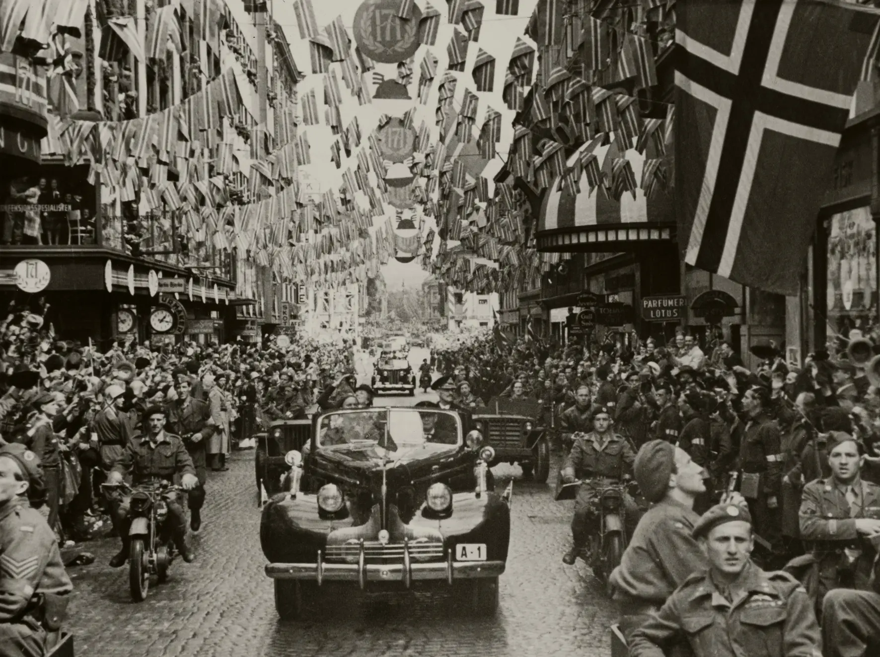 Utstillingen er en del av Regjeringens 75 års gave til kongeparet. Gjennom symbolrike gjenstander, bilder og tekster formidles kongefamiliens utenlandsopphold under andre verdenskrig. Les mer om utstillingen her.