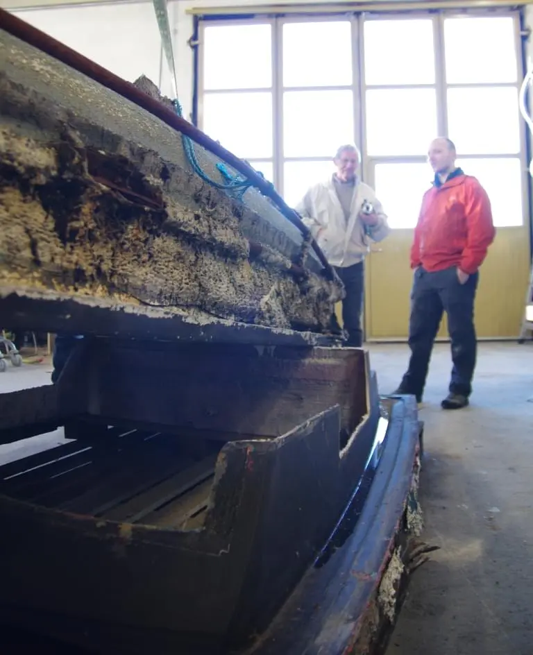 Spenningen var stor når skrogformen ble løftet av. Foto: Arve Lindvig
