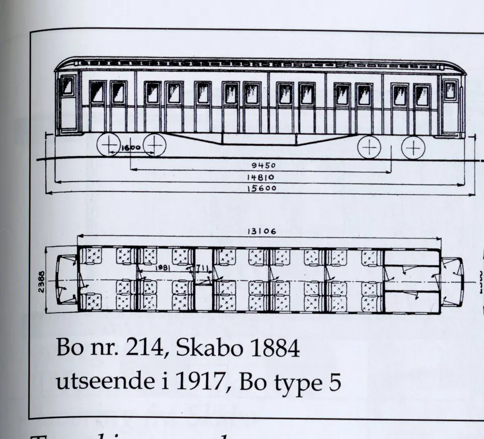 Tegning av Bo 214 skannet fra boken om Rørosbanen (2002).