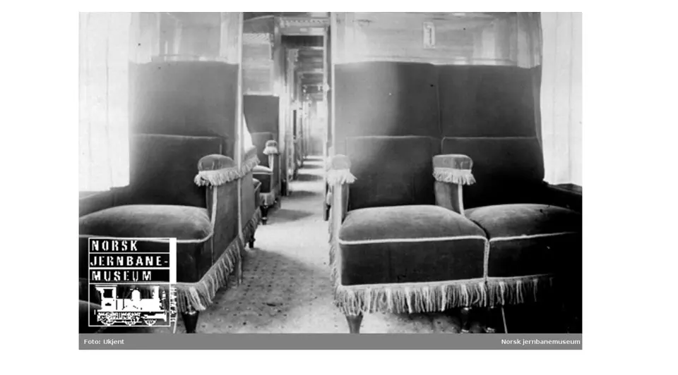 Interiørbilde fra Rørosbanens boggivogn (sovevogn) litra Bo nr. 212-214 som ny. Bildet brukes med tillatelse fra Norsk Jernbanemuseum. Fotograf ukjent. Inventarnummer JMF013403. Kilde Digitalt museum.