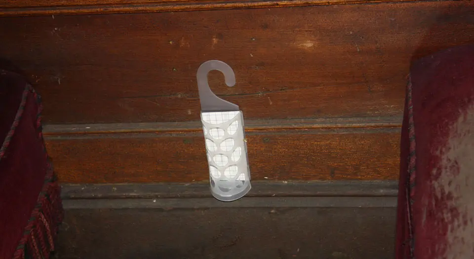 Møllefelle plassert i Bo 214. Kan gi en indikasjon på hvor stort møllangrepet er og gi grunnlag for videre tiltak. Foto Thorunn Lunde