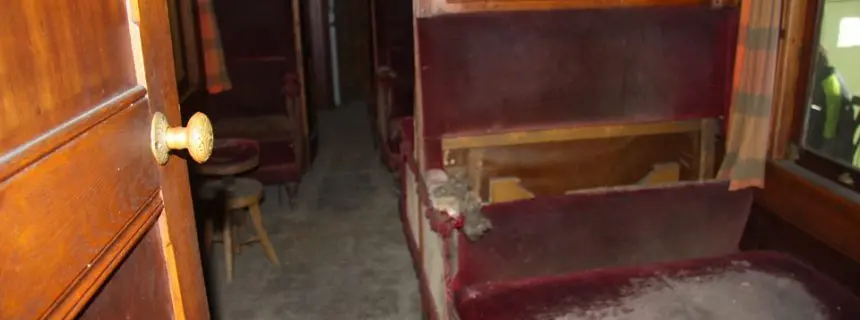 De gamle gardinpossementene er fremdeles i vognen. Foto Thorunn Lunde