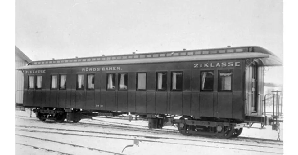 Rørosbanens boggivogn (sovevogn) litra Bo nr. 214 som ny. Bildet tilhører Norsk Jernbanemuseum. inventarnummer JMF011180. Fotograf ukjent. Kilde: Digitalt museum.