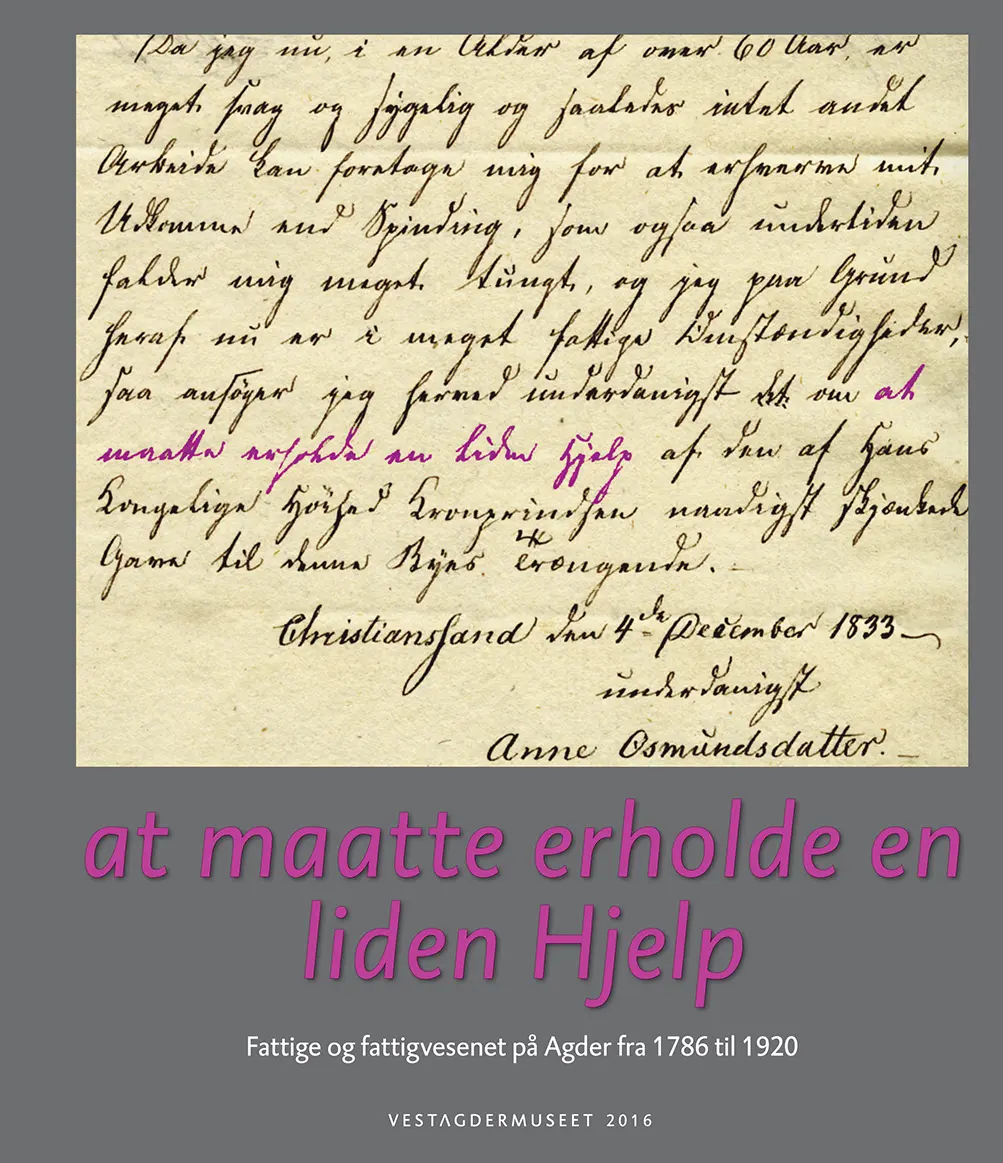 The exhibition presents a timeline that shows the establishment and development of the poor relief, which also describes the changing views on poor people through history. The timeline is based on the findings of a publication that will also be launched at the opening of the exhibition: «… at maatte erholde en liden Hjelp.» Fattige og fattigvesenet på Agder fra 1786 til 1920. (“Getting a Little Bit of Help.” The Poor and Poor Relief in Agder from 1786 to 1920.) There, six different authors examine the subject from different angles. Together, their articles are a good introduction to the treatment in the past of different groups of poor people.