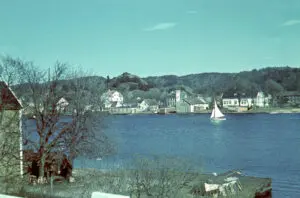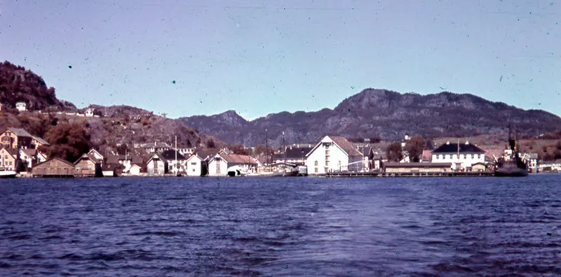 Mange spennende bilder er også tatt i Flekkefjord havn som dette – og ikke minst på Hidra hvor tyskerne anla et kystfort på Hågåsen.