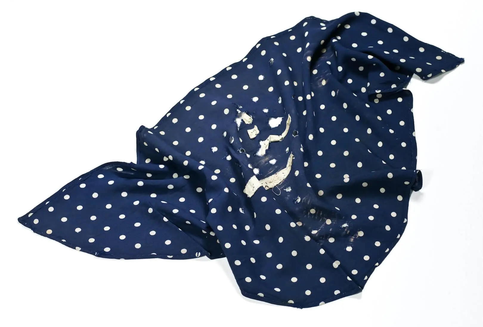 «Fronten nærmet seg, og de besluttet å flytte oss til en annen arbeidsleir. Vi måtte marsjere gjennom byene der folk så hvordan vi var kledd […] De ga oss vanlige klær og et hodetørkle som var mørkeblått med hvite prikker på størrelse med erter. Etter hvert ble de hvite prikkene borte, og der de hadde stått ble det hull. Jeg bestemte meg for å reparere hodetørkleet. […] Først nå forstår jeg at dette var et symbolsk uttrykk for ikke å gi opp […], et slags symbol på en ung pikes kamp for å overleve.»